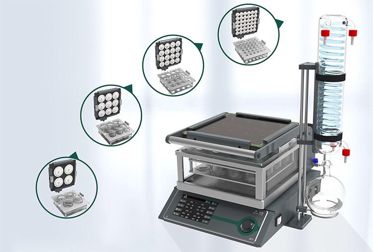 模塊化設(shè)計(jì)——兼容多種容積樣品瓶 APE 系列真空平行濃縮儀采用模塊化設(shè)計(jì),可以選配 850ml、 05450ml、250ml、60ml 樣品瓶適配器,滿(mǎn)足不同體積樣品濃縮需求。