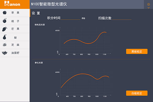 該軟件基于Android平臺開發(fā)和使用,中文界面,界面友好,操作簡便、人性化設(shè)置。具有暗電流掃描、參比掃描、樣品掃描、查看/顯示光譜、下載模型、調(diào)用模型等主要功能。